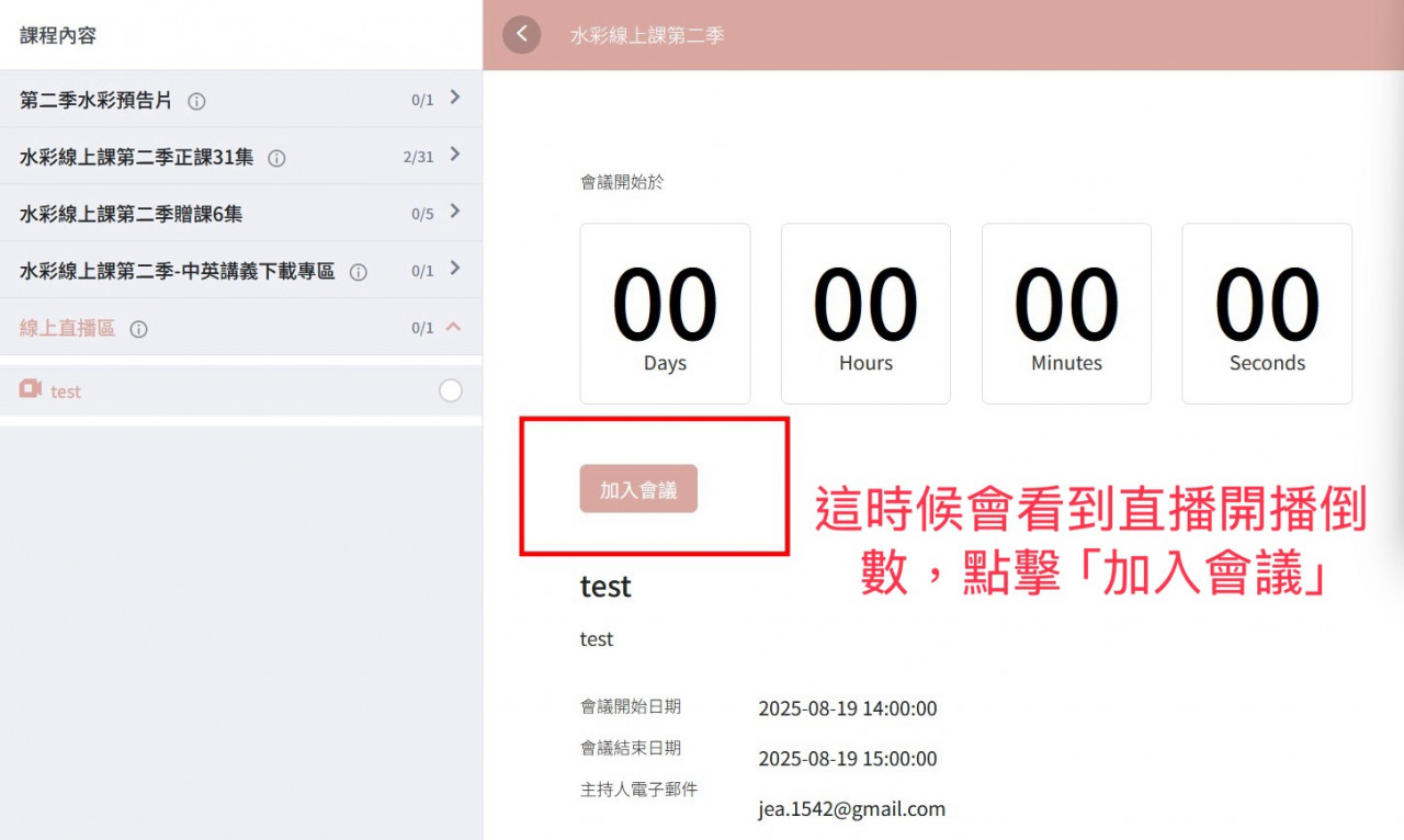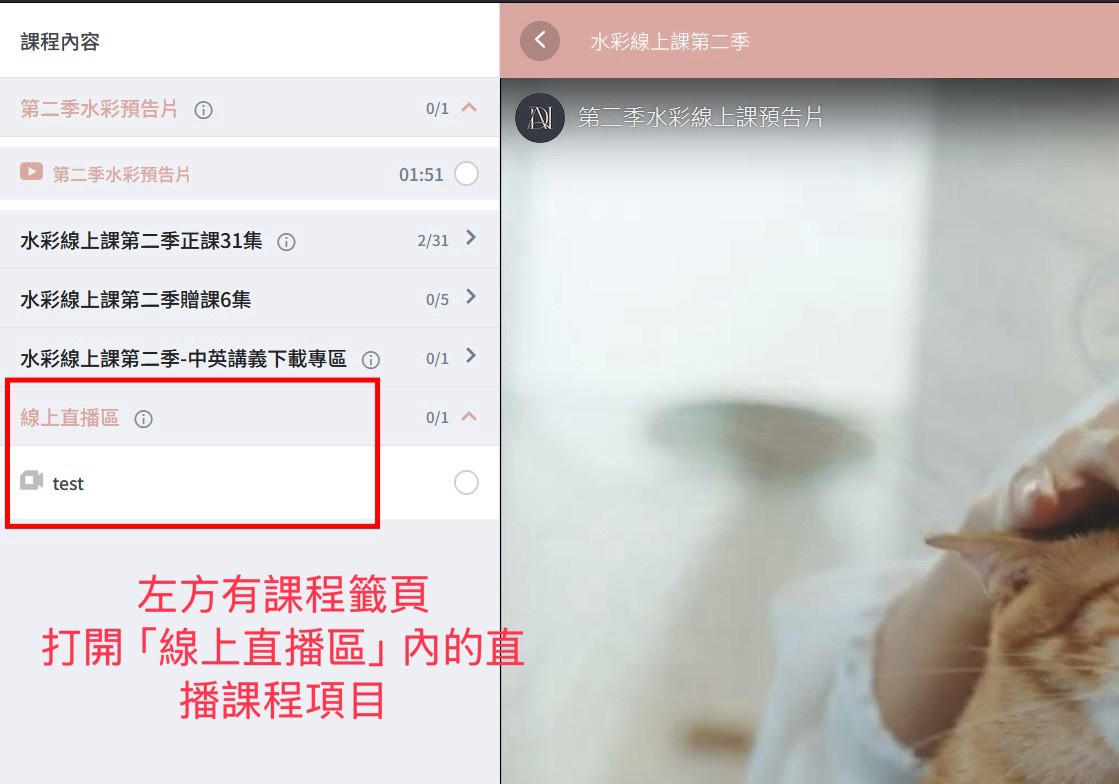 請有興趣參與的同學留意開播時間與提醒信件,因直播課非水彩第一、二季線上課課綱內主要內容,當日直播後老師的繪畫主題僅會提供在"線上直播課程籤頁內"