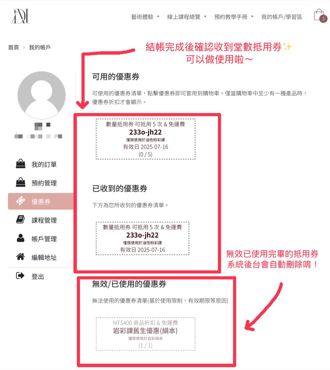 是不是就和一般網路購物方式一樣簡單呢 ~ 比較需要同學注意的是請一定要詳閱商品資訊,每一項活動的方案抵用券使用期限不太一樣,所以必須注意在使用期間內安排完學習活動唷 ! (如方案抵用券無在期限內自行使用完畢的話,恕不予補發)