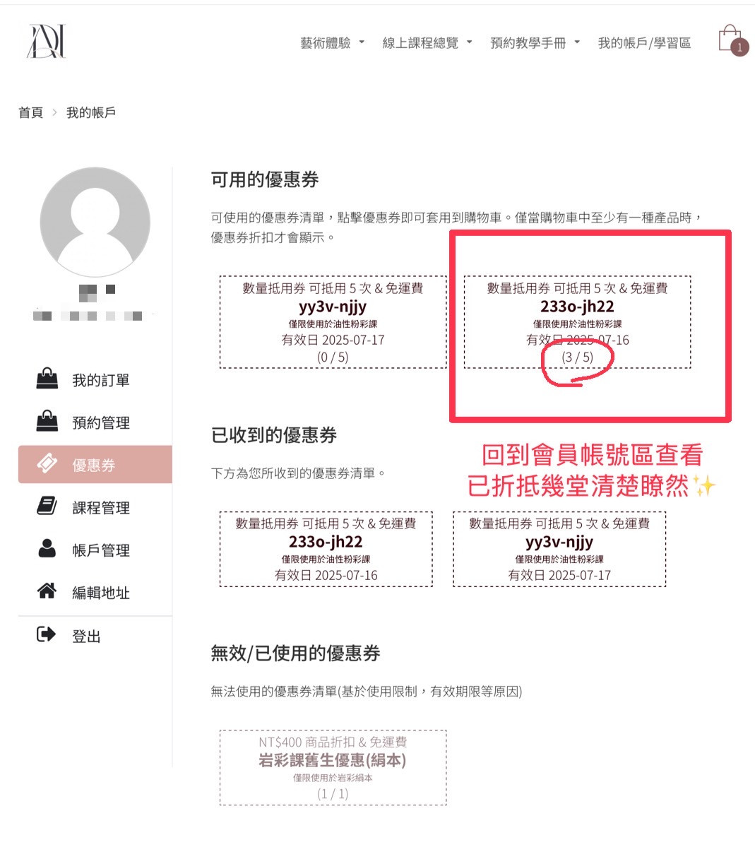 每一項課程的方案活動券會依據您購買的活動項目作相對活動次數折抵,例如您是購買色鉛筆的方案券,就只能抵色鉛筆活動的次數唷!