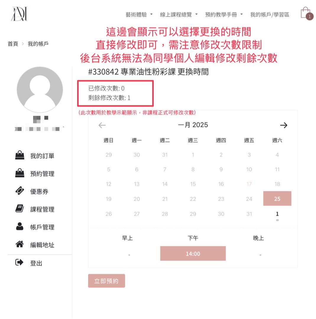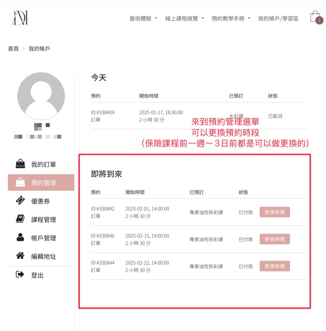 簡易的系統讓您輕鬆學會自行更換時段 ! 假如還有問題或是不清楚的地方,點擊此處請小幫手支援,DAIART祝大家活動愉快💖