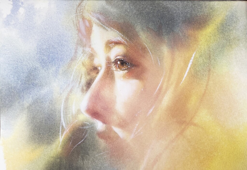 以水彩的透明與層次描繪人物神韻,從五官比例、肌膚色階到神情流露,細緻刻畫每一張臉的獨特氣質。利用濕畫法與半乾筆觸控制邊緣虛實,觀察順序與上色節奏,透過多次修正與疊色,逐步捕捉人物表情中的情緒張力,讓畫面兼具結構準確度與情感深度。