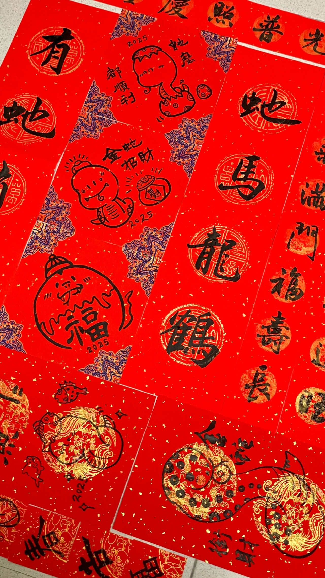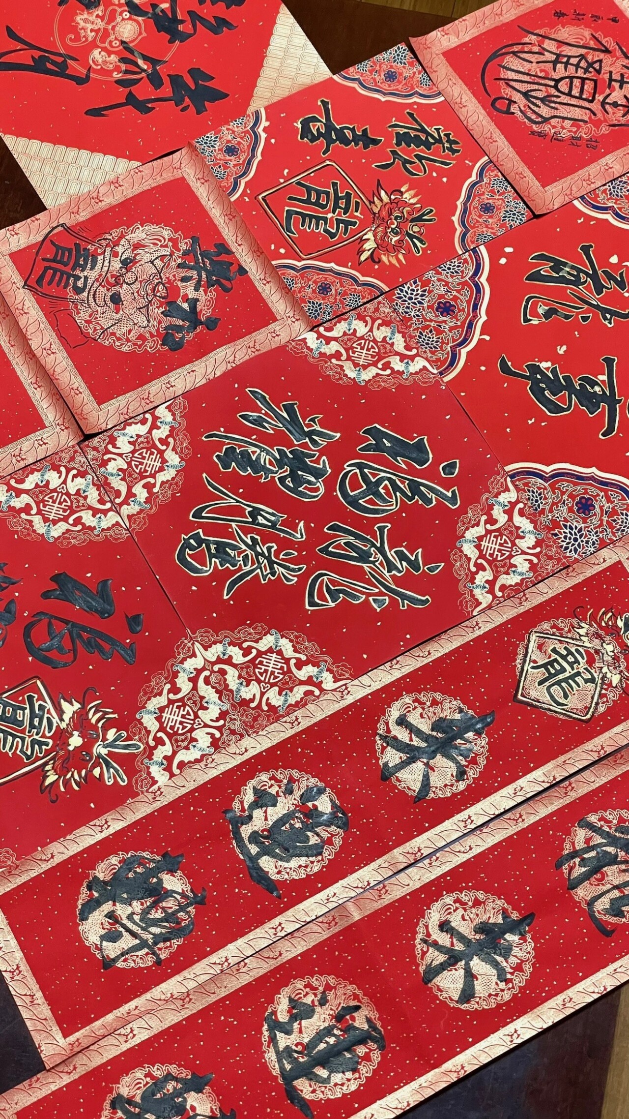 在專注而從容的書寫節奏中,完成一幅方形春聯,讓文字不只是祝賀語,而是一件可被細細欣賞、妥善擺設的書法作品。